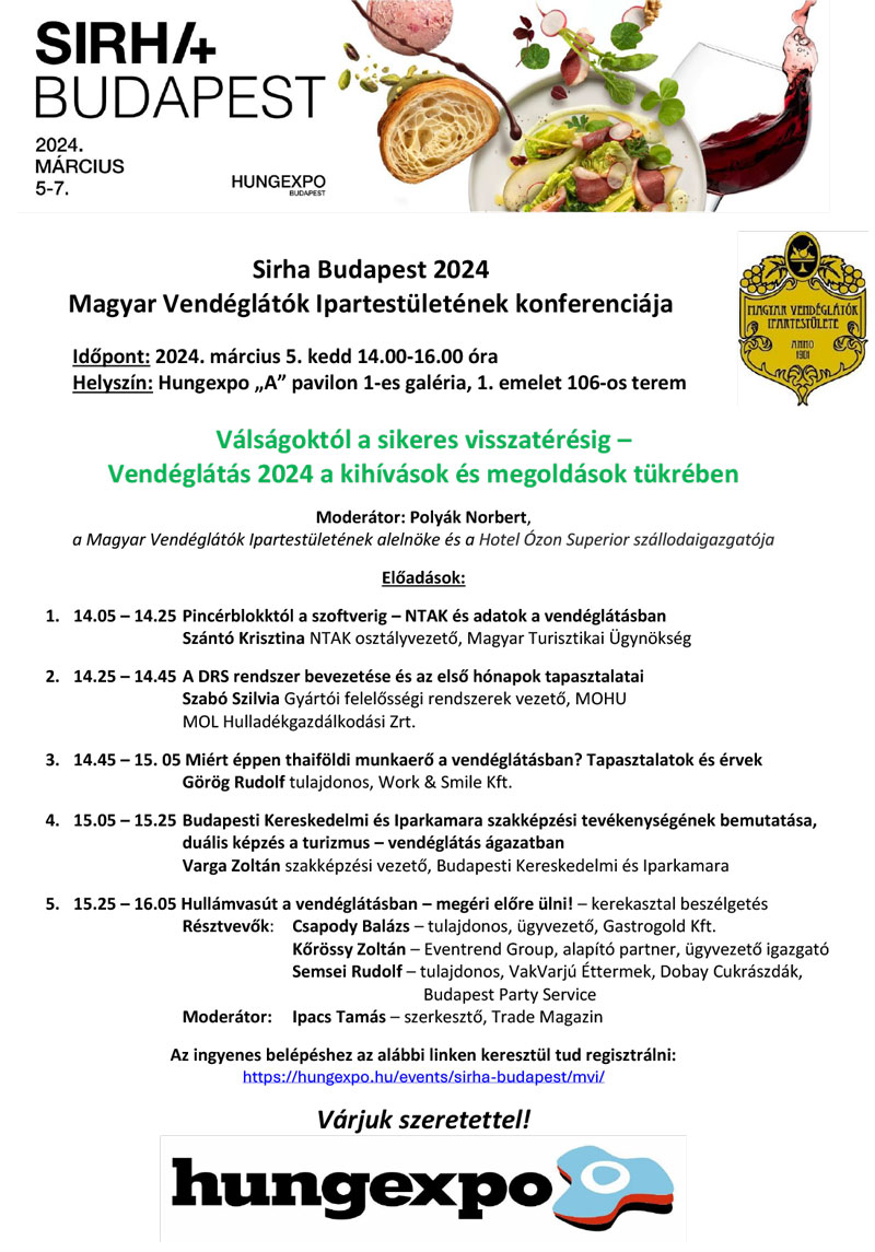 Sirha Budapest 2024 - Magyar Vendéglátók Ipartestületének konferenciája